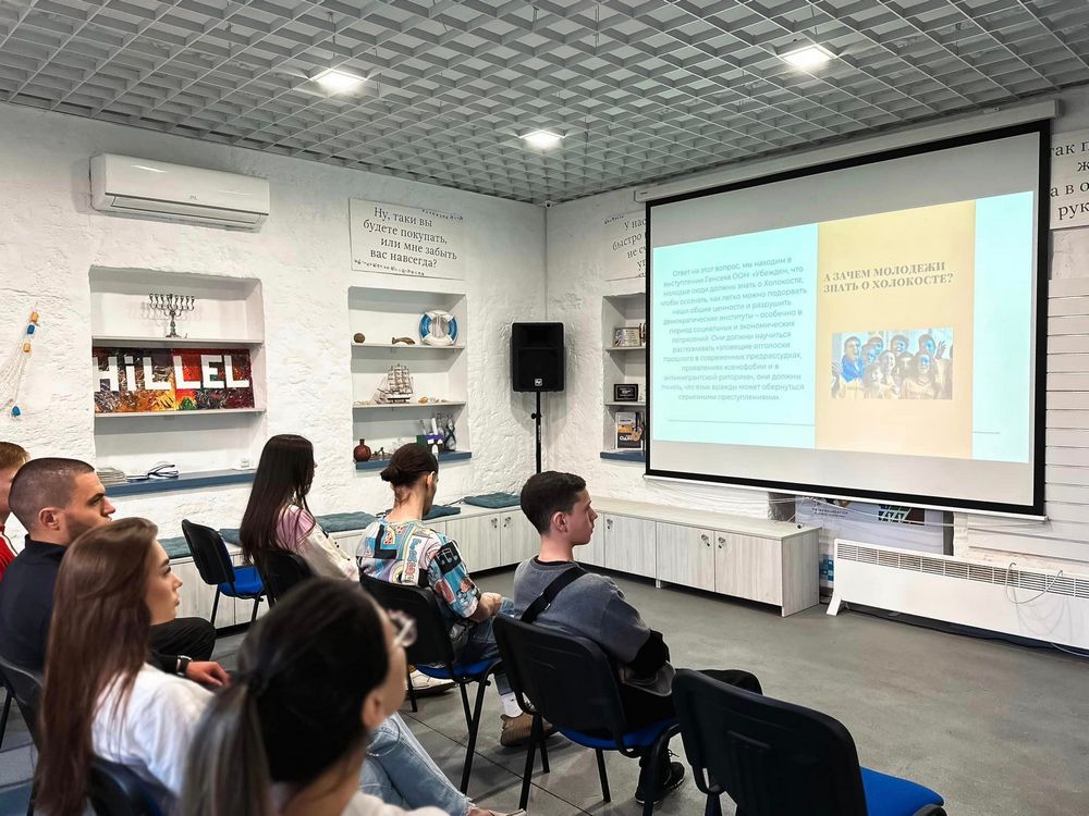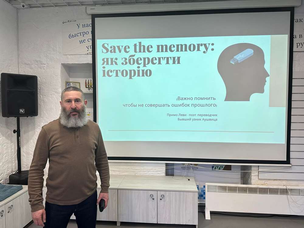 Head of the Board of Directors of the Odessky Holocaust Research Center Pavlo Kozlenko April 23, 2023 giving a lecture “Save the memory: how to preserve history” for the Hillel youth club and Beit Grand JCC.