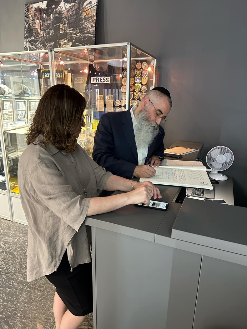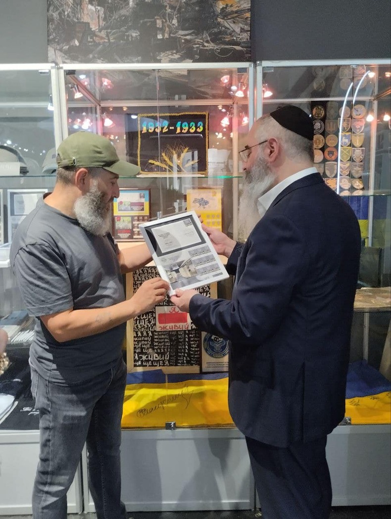 And we presented an envelope for the riddle to the Head Rabbi of Odessa and the Day of Ukraine Abraham Wolf stamp issued separately from Ukrposhta in honor of the museum.