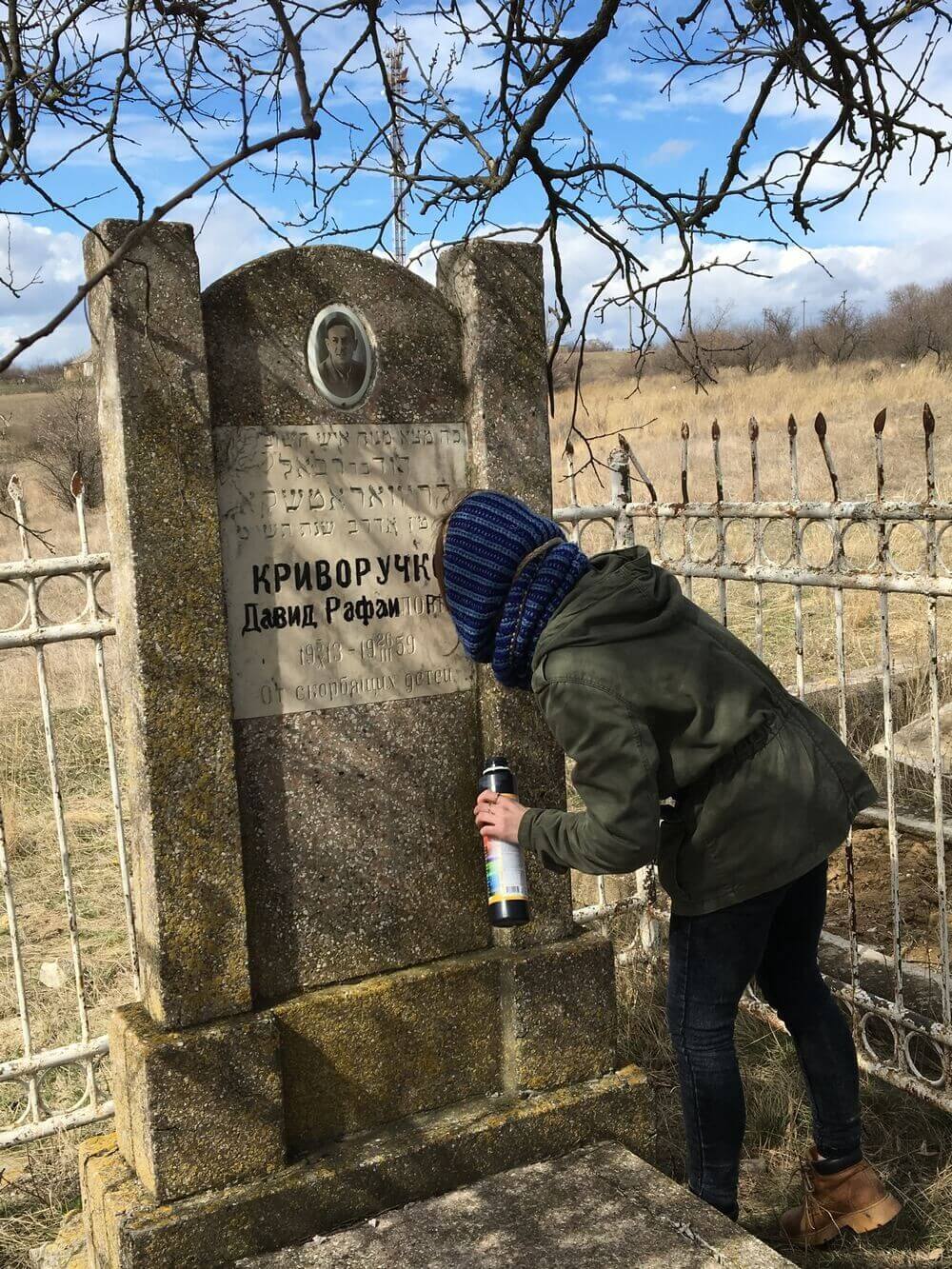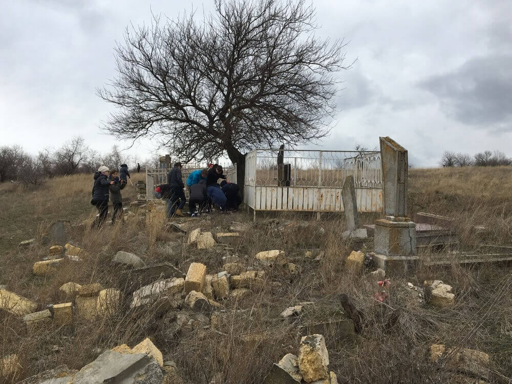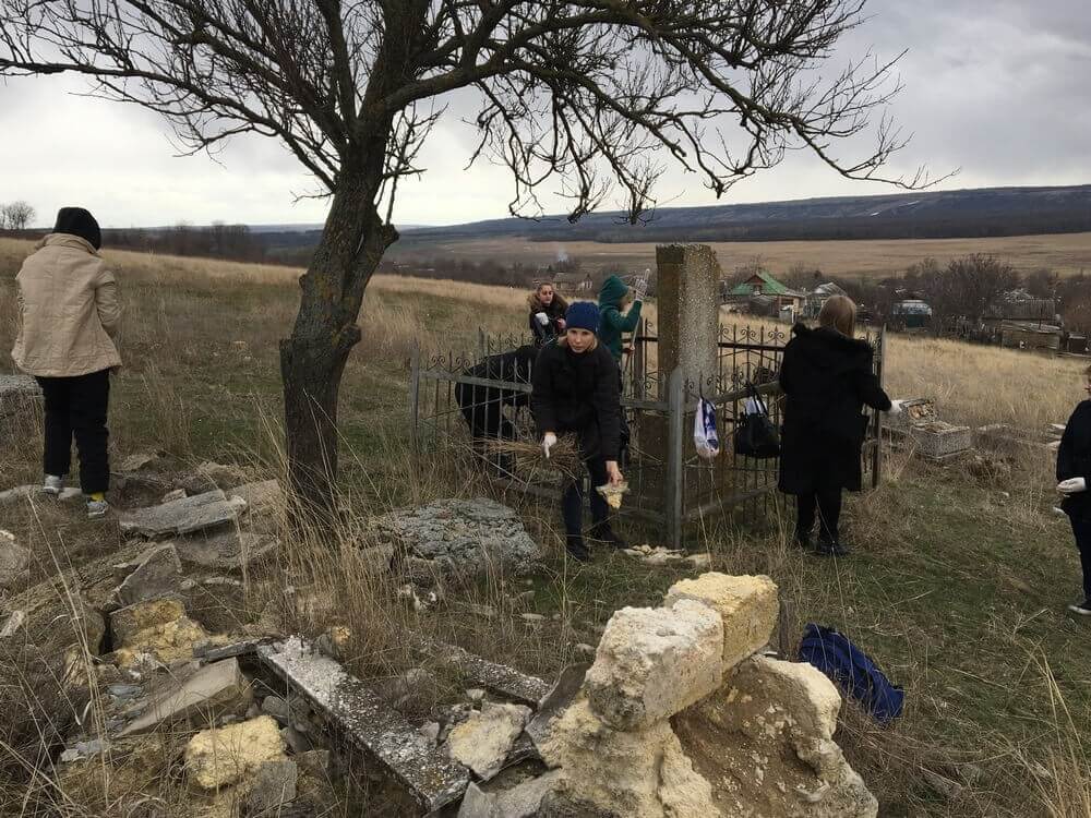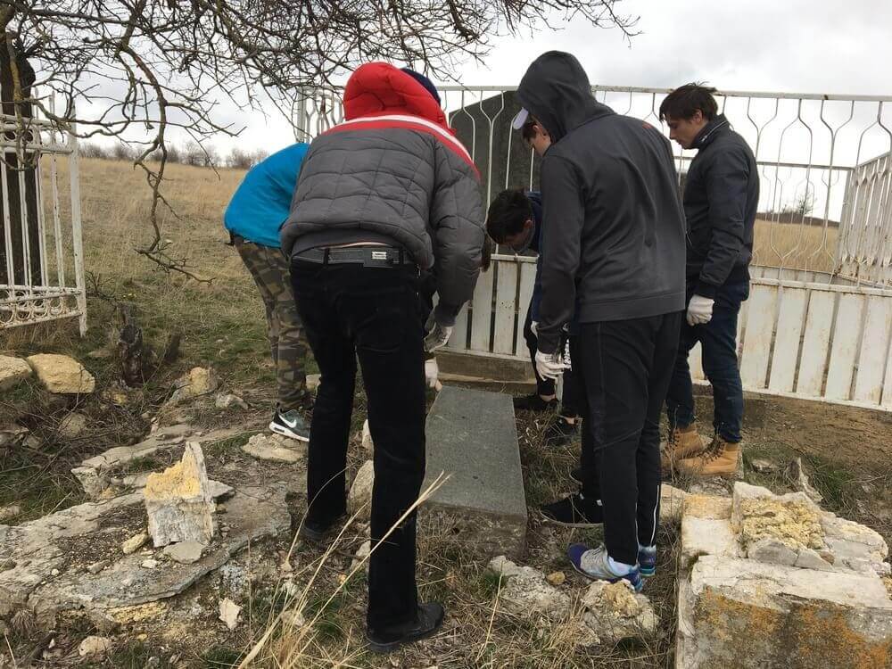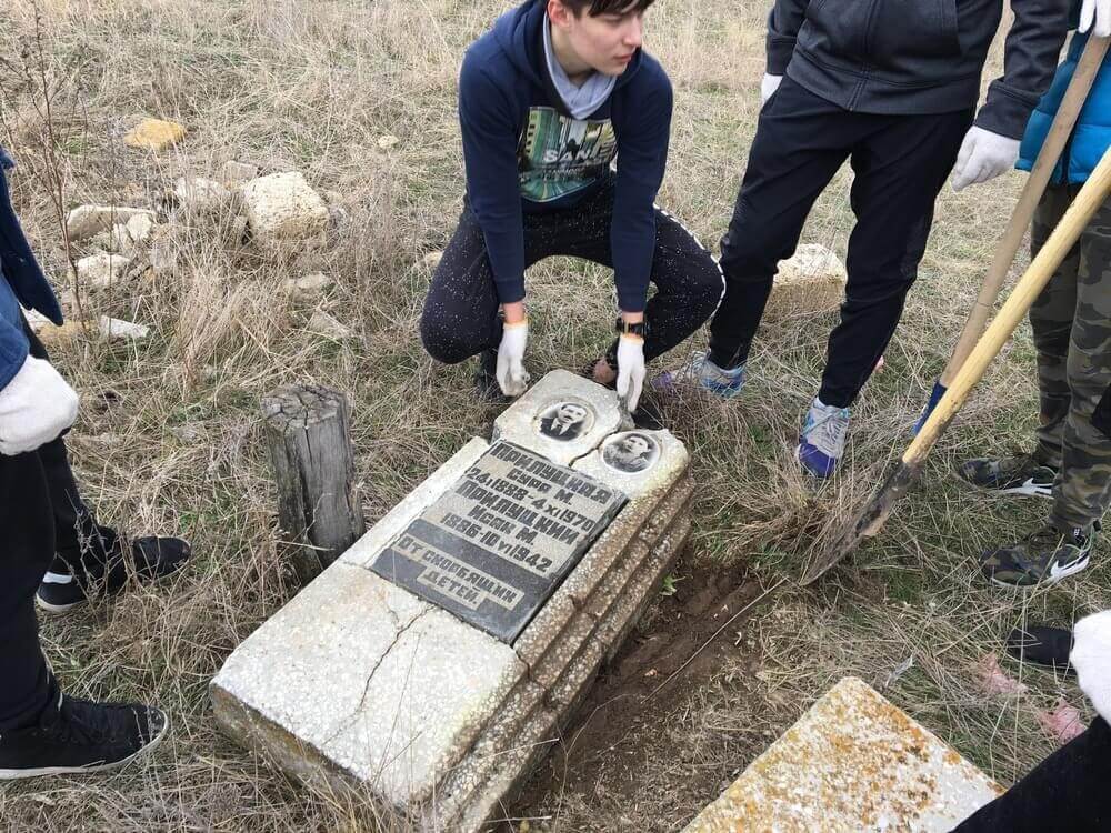 March 19, 2017. The League of Jewish Volunteering of the Beit Grand Jewish Center and the Foundation "In Memory of the Victims of Nazism" cleaned up the Jewish cemetery in Berezovka. They lifted the fallen tombstones and replaced the letters on the memorial plaques.