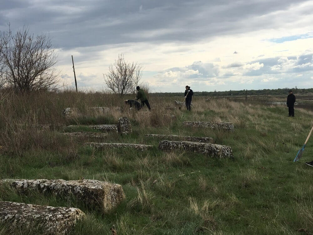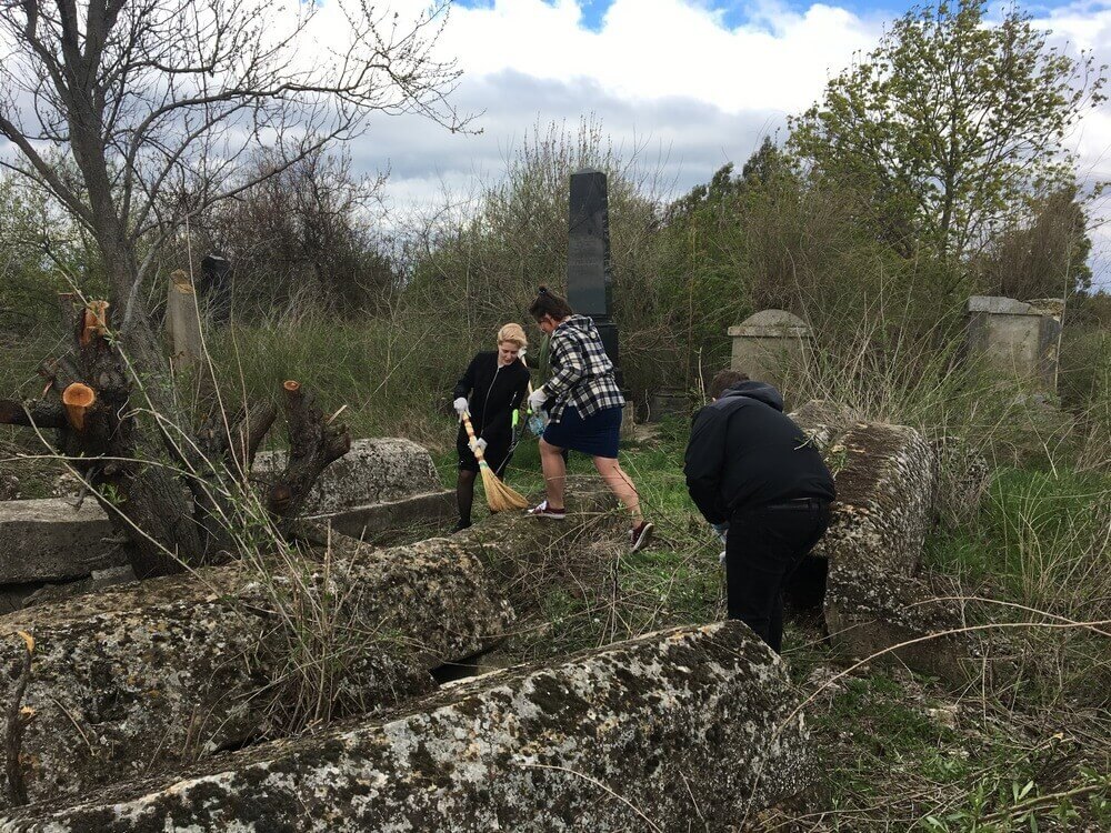 April 9, 2017. The League of Jewish Volunteering of the Jewish Community Center "Beit Grand" and the Foundation "In Memory of the Victims of Nazism" cleaned the Jewish cemetery in Kiliya. They lifted the fallen tombstones, removed the debris, and painted the gate. After the cleaning, the head of the Jewish community of Kiliya, Boris Arkadievich Shvartsman, gave the boys a tour.